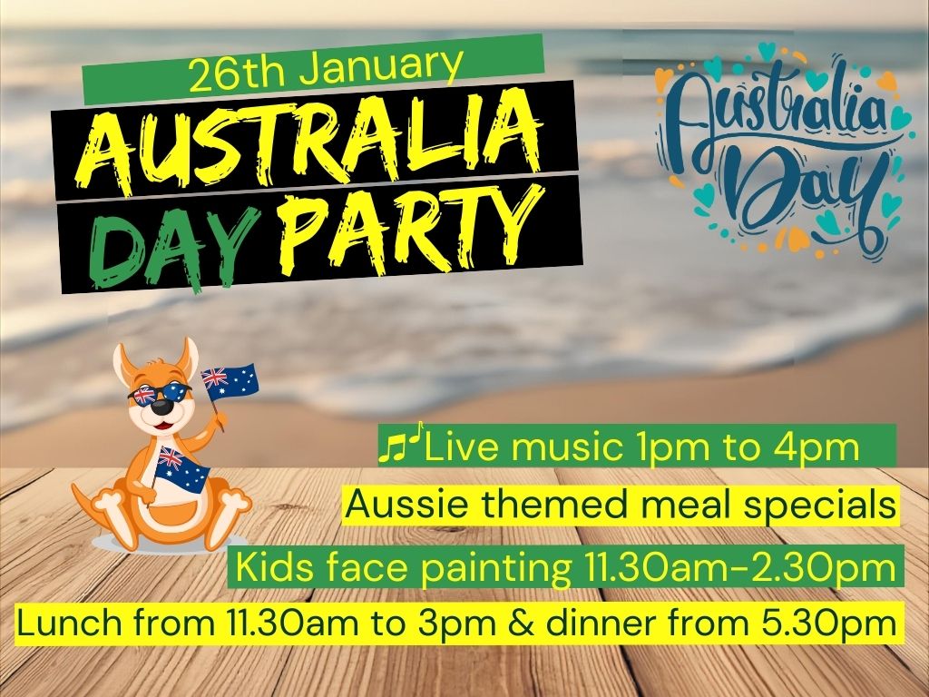 Live entertainment from 1pm - 4pm - Shane Wilkonson Aussie themed meal specials FREE kids face painting 11.30am - 2.30pm Lunch from 11.30am to 3pm & dinner from 5.30pm